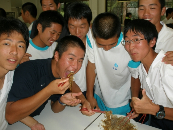全部終わったら、このように記念撮影し、御苦労さまでした、となります。なお、この集団は生物部総勢70数名です。明後日、火曜日は全校で後かたずけをします。さあ、ゆっくりお休み下さい。