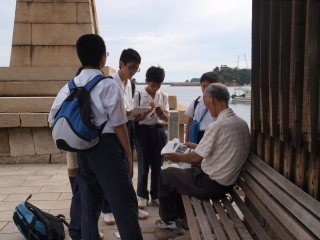 Bグループは鞆の浦歴史民俗資料館でパンフ・鞆の浦観光地図を配布していただき,昼食後,班別行動へ出発しました。。 |
