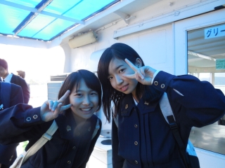 遊覧船にて。あの名作映画の有名なワンシーンを思い起こさせます。みんな生き生きとした良い表情です。 |