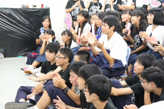 お次は書道部。書道部の目玉の書道パフォーマンスの練習中でした。実は白陵の書道部、書道パフォーマンスで全国大会に出場したことがあるんです!