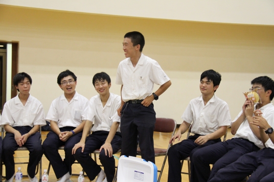 いよいよ運動会の練習・準備の方でも忙しくなってきましたが、今日も2つの部活にお邪魔しました。まずはESSです。今回の展示の目玉の英語版の桃太郎の紙芝居の練習をしていました。
