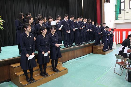 厳しい寒さの中にも暖かい日差しが差し込み、春が近づいてきていることを感じるようになりました。本日は私たちのためにこのように厳かで心のこもった卒業式を挙行していただきましたことを、卒業生を代表して心よりお礼申し上げます。