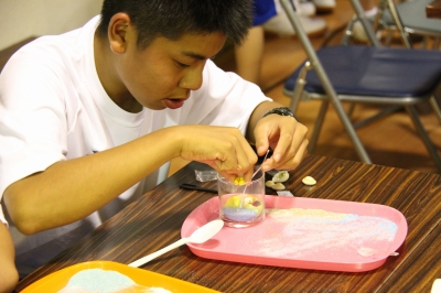 | 座禅は初めてで、足がとてもしびれるほど辛くて、二度とない貴重な経験をさせてもらい、よかったです。 カッター訓練では、行きは潮が逆で疲れました。 その後のお弁当はとても美味しかったです。 帰りはレースで、僕の船は昨日の模擬レースは一位だったので今日も頑張ろうとしていましたが、2組のA艇に負け、惜しくも2位でとても悔しかったです。 でも、力を合わせる大切さを知ることができました。 カッター訓練の後に食べるBBQは最高でした。 キャンドル作りでは、自分だけの記念のものとなりました。 とてもいい思い出となる一日となりました。 (S.T.) カッター訓練最終日、午後のレースでは私のチームは5位だったけれども、みんなと協力できたのでよかったと思います。 BBQはとても楽しく食べられたので、すごく良い一日でした。 (M.N.) | ||