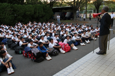 | 帰りのバスでは、みんな疲れた様子でしたが、臨海学習最後の一時をバスの中で楽しみました。 解団式では最後の力を振り絞り、先生方のお話を真剣に聞きました。 本当にためになる2泊3日でした。 (Y.Y.) | ||