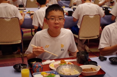 修学旅行最後の夕食は特に豪華で,蟹やイカのお刺身を頂きました。ボリューム満点で,おなかが一杯になり,大満足でした。 |