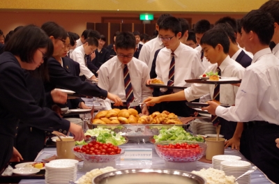 夕食は朝食と同じくバイキングを楽しみました。その後にサプライズもあり,最高の時間になりました。今日の締めくくりの交歓会。各クラスの有志が精一杯出し物をしました。思い出に残る夜になりました! |