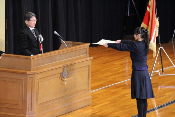数十年ぶりの厳しい寒さが続いています。その中でも草木はようやく長い冬の眠りから覚め、生命の息吹がうかがえる季節となりました。このような良き日に卒業生の皆様が晴れて高等学校の全過程を終えられご卒業を迎えられましたことを在校生一同、心よりお祝い申し上げます。と同時に先輩方とのお別れが、これほど早いとは信じられず、今もなお寂しい気持ちがこみ上げてくるのを禁じえません。
