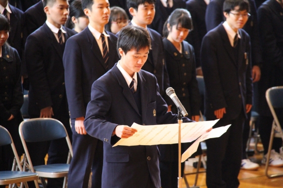 白陵高等学校の今後の益々のご発展と、後輩の皆さんの活躍を祈念いたしまして、答辞とさせていただきます。