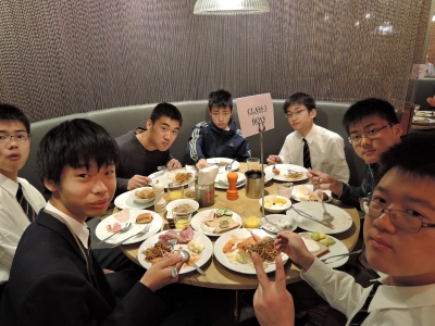 朝食。修学旅行も後1日。みんな元気。 | |