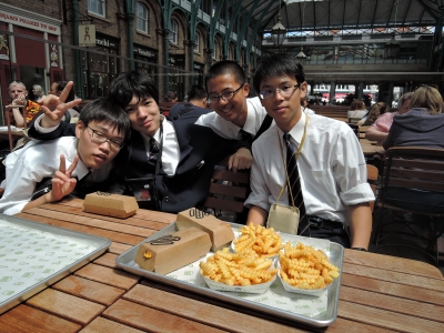 | 修学旅行3日目。今日は4つの班に分かれてロンドンをめぐった。イギリスの男性はスタイルがよくかっこいい。僕とは大違いだ。キューガーデンのコースをまわった僕は、ロンドン塔にも行きました。 かつて城だったそこでは、宇宇久しい王冠とか宝石があって、のどから手がでるほど欲しくなりました。ダイヤモンドはハッカの飴玉くらいありました。次にコベントガーデンはフランスの雑誌の表紙に なりそうな雰囲気のマーケットでした。気が付いたら、あっというまの一日でした。5組男子SH | |||