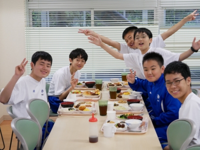 朝食です。雨の予報ですが、午前のカッター訓練は予定通り行います。 |