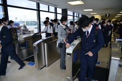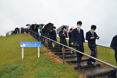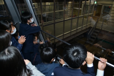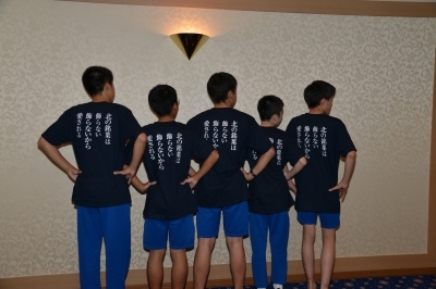 大教室で短時間ですが、結団式を行いました。お見送りの中学部長,団長の教頭,生徒代表の挨拶がありました。 | |