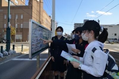 赤レンガ倉庫前の駐車場に集合。全員、無事に研修終了。 | |