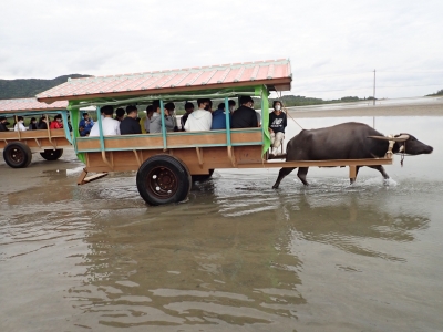 ①由布島水牛車乗車。浅瀬を渡りました。 |