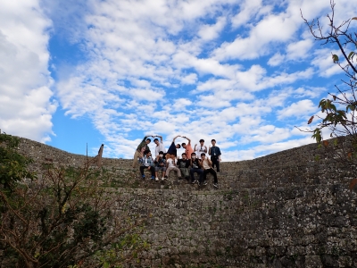 1組が中城城跡を発つ頃に、他のクラスは今帰仁城跡に到着。 |