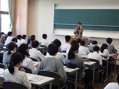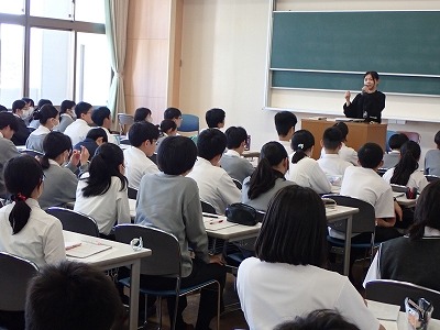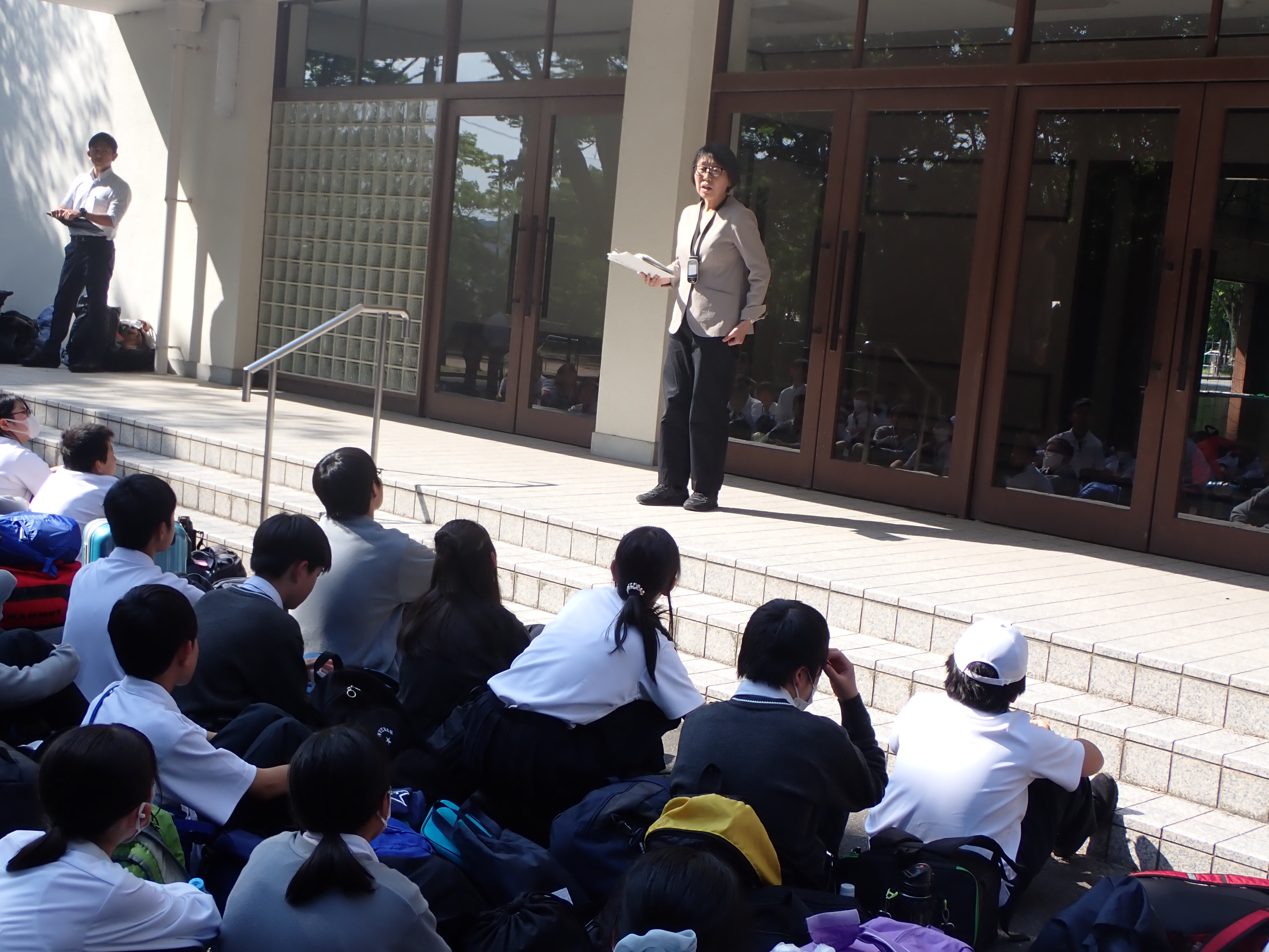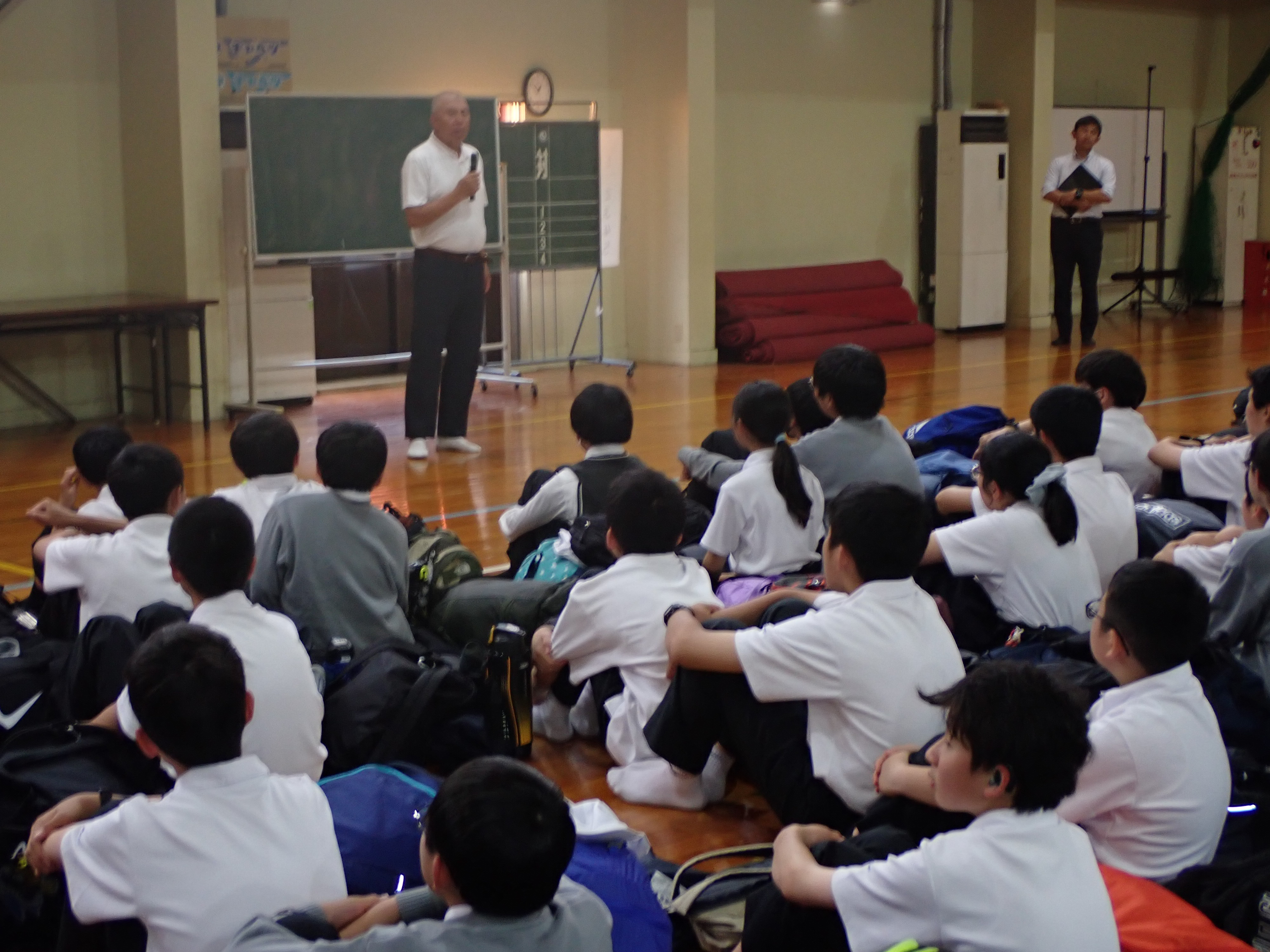 大教室で結団式を行いました。生徒部長、学年主任、養護教諭から話がありました。
