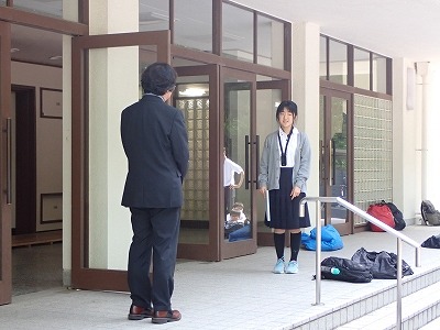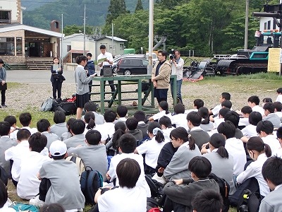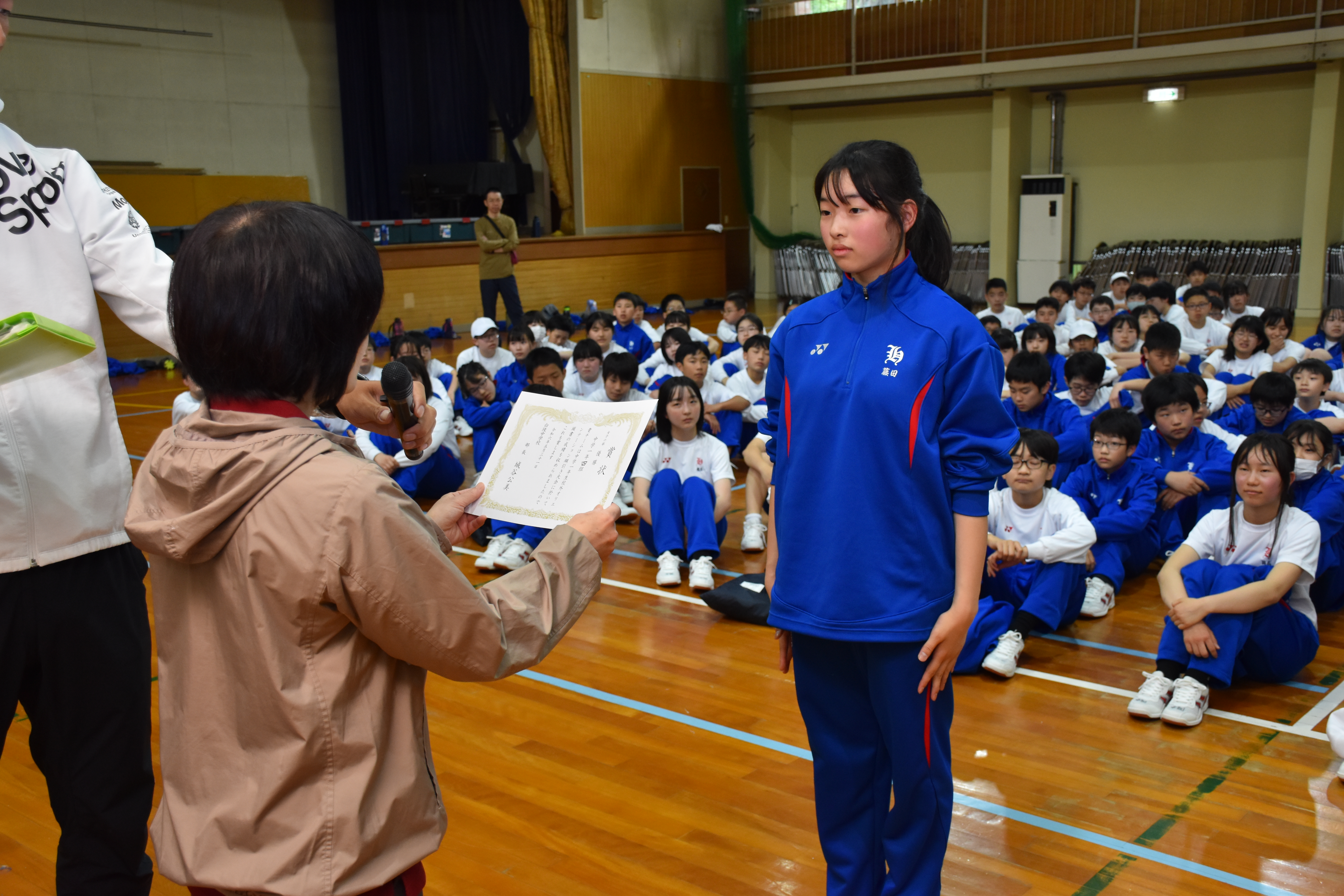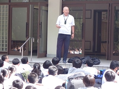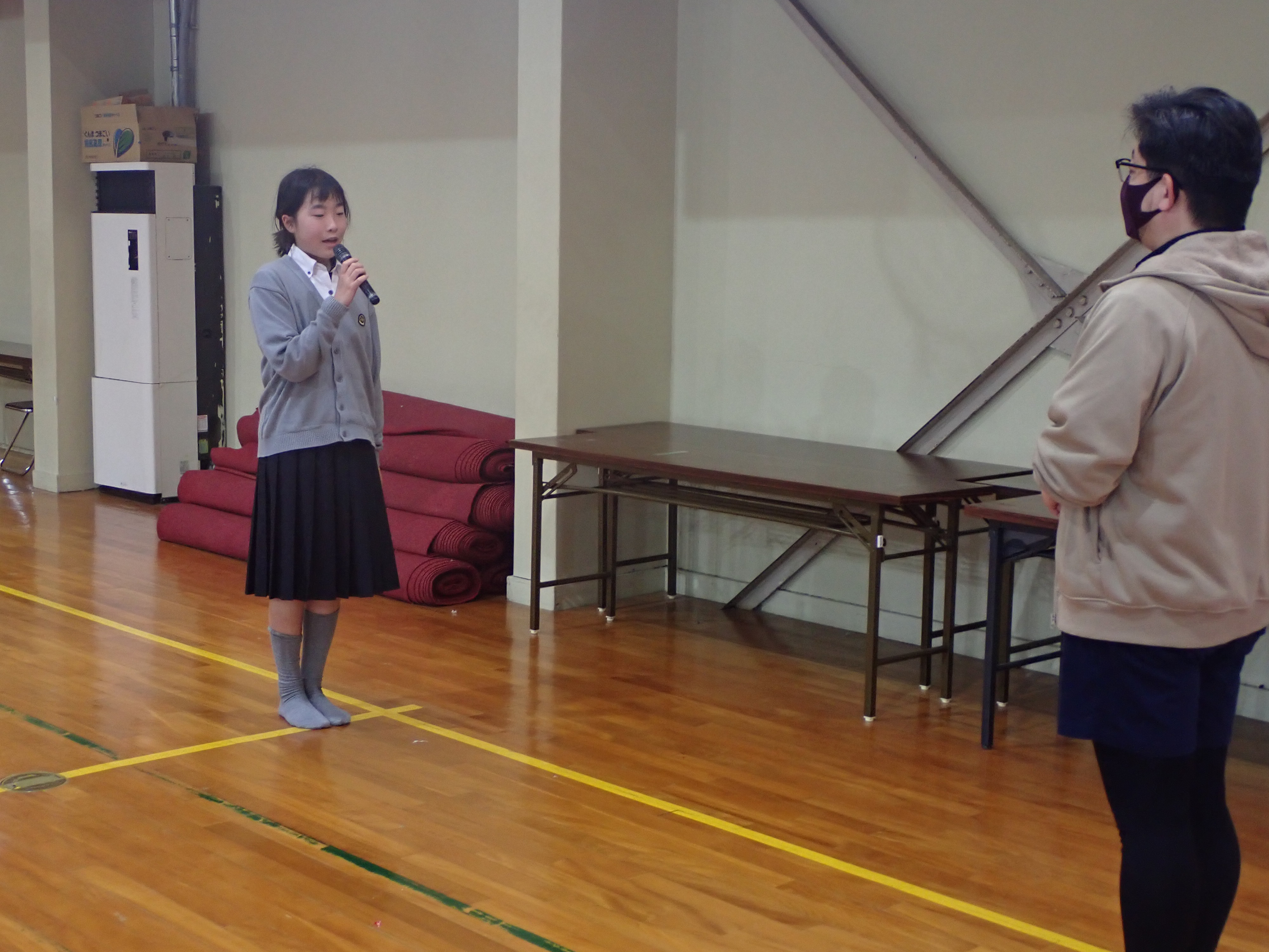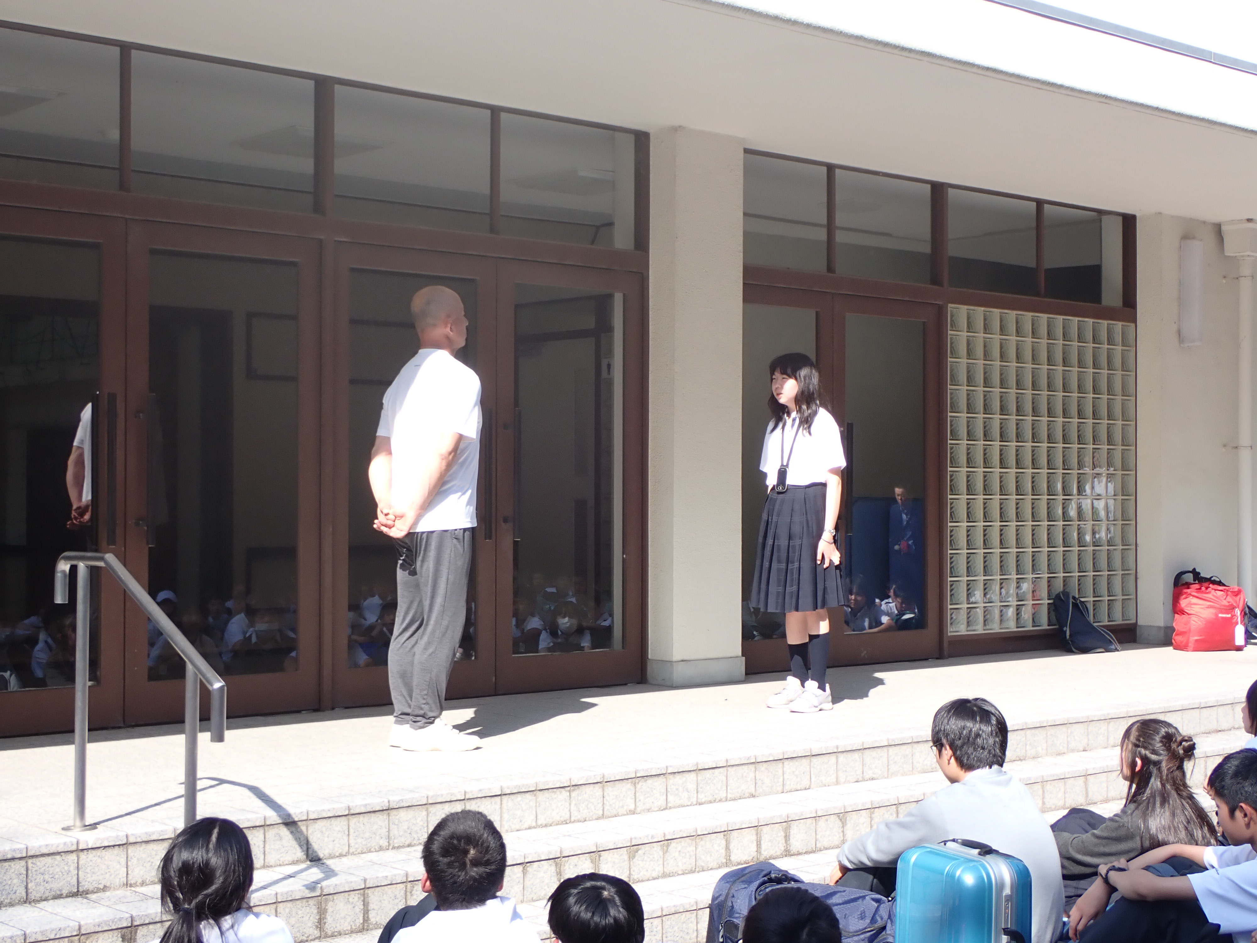 学校にて結団式。生徒代表も挨拶をしてくれました。