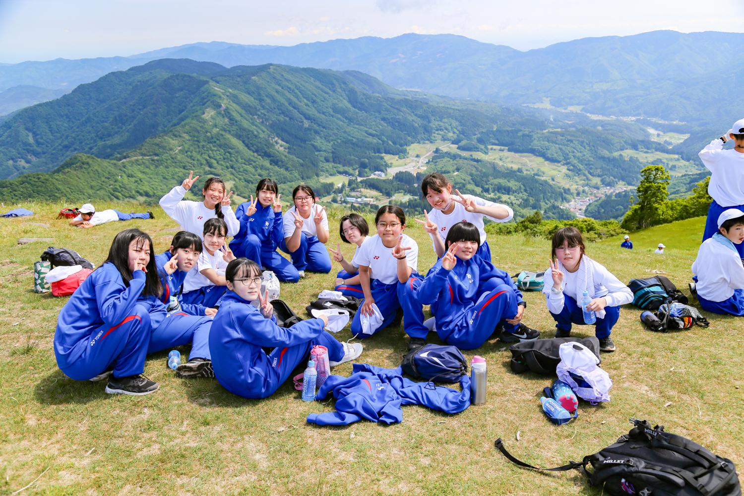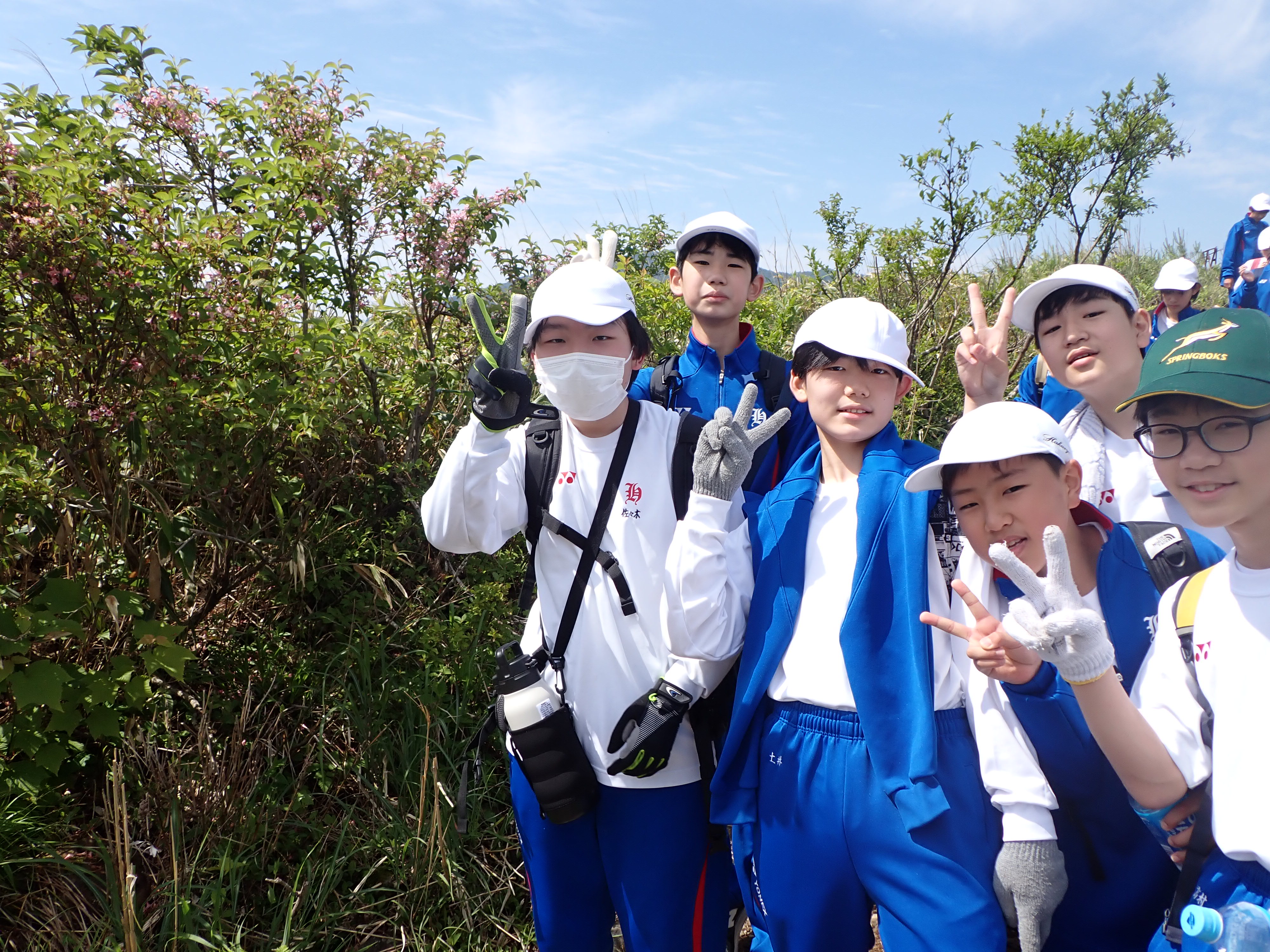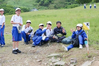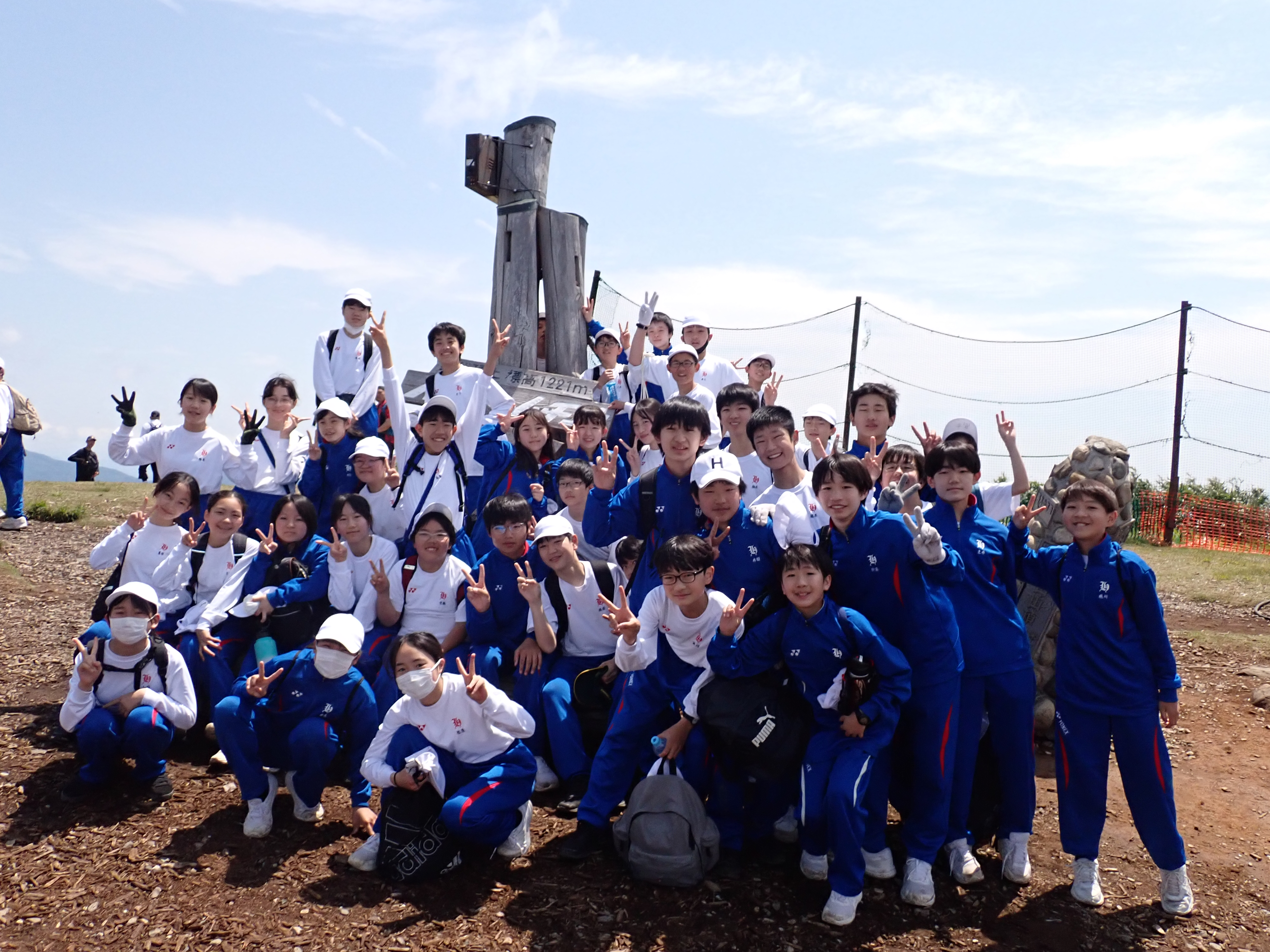 オリエンテーションのメインでもある登山です。昨日の雨が嘘のように、晴天にめぐまれました。 道中では少し疲れ気味の生徒も見られましたが、みんなで協力し、助け合いながら無事に山頂に到達しました。
