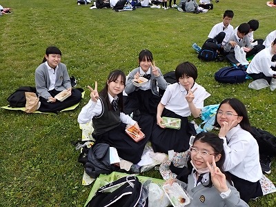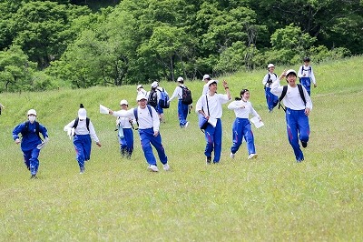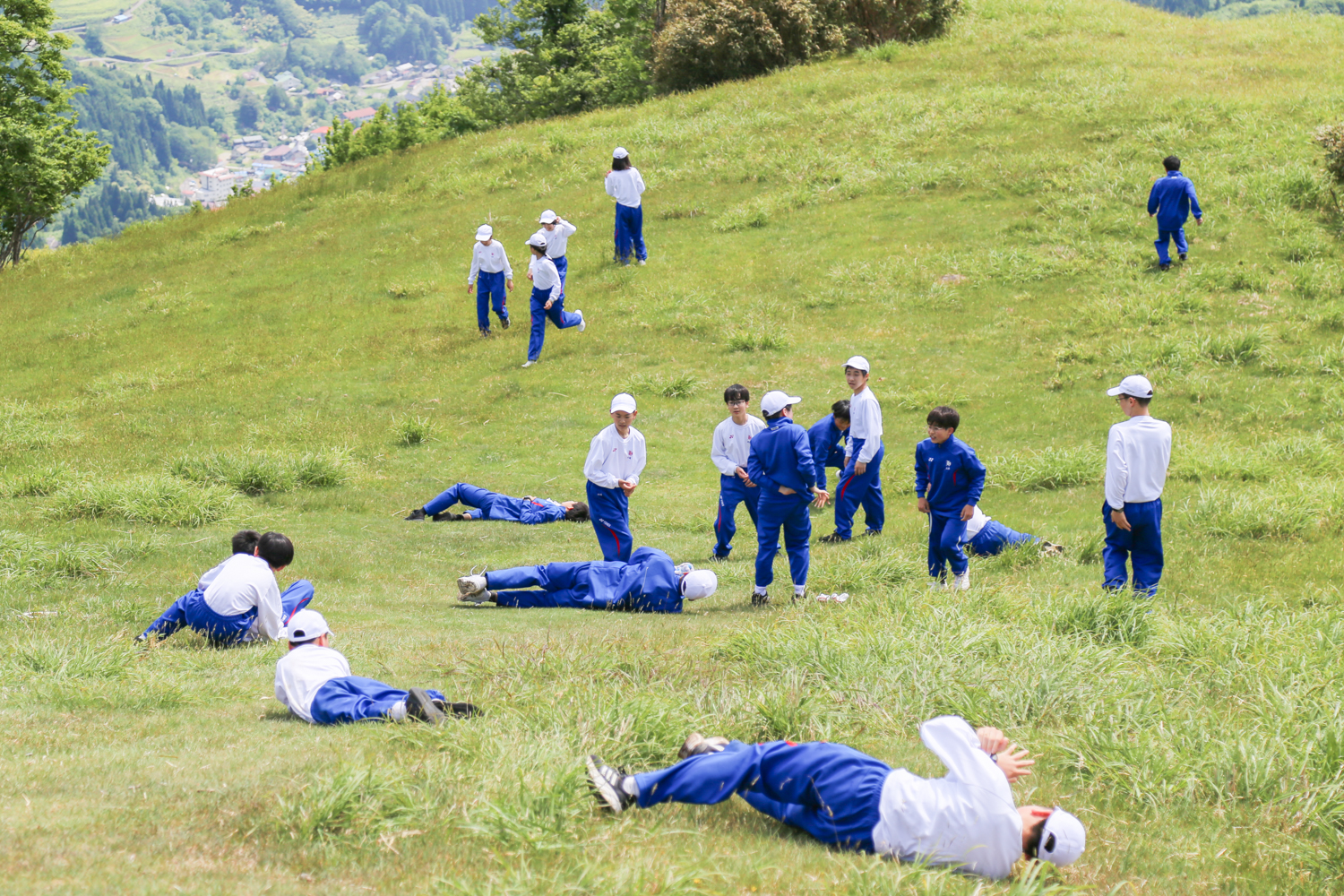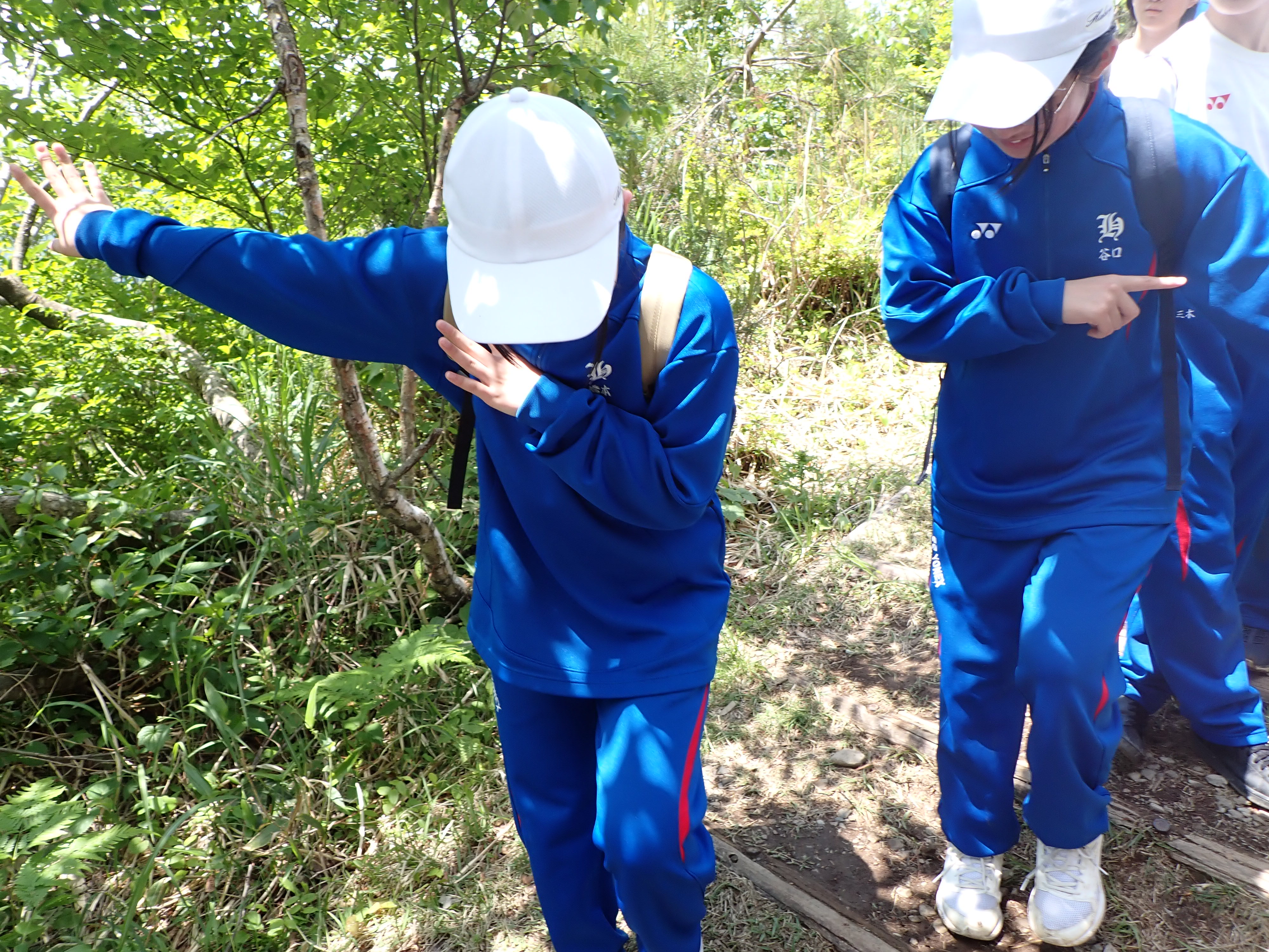 オリエンテーションのメインでもある登山です。昨日の雨が嘘のように、晴天にめぐまれました。 道中では少し疲れ気味の生徒も見られましたが、みんなで協力し、助け合いながら無事に山頂に到達しました。