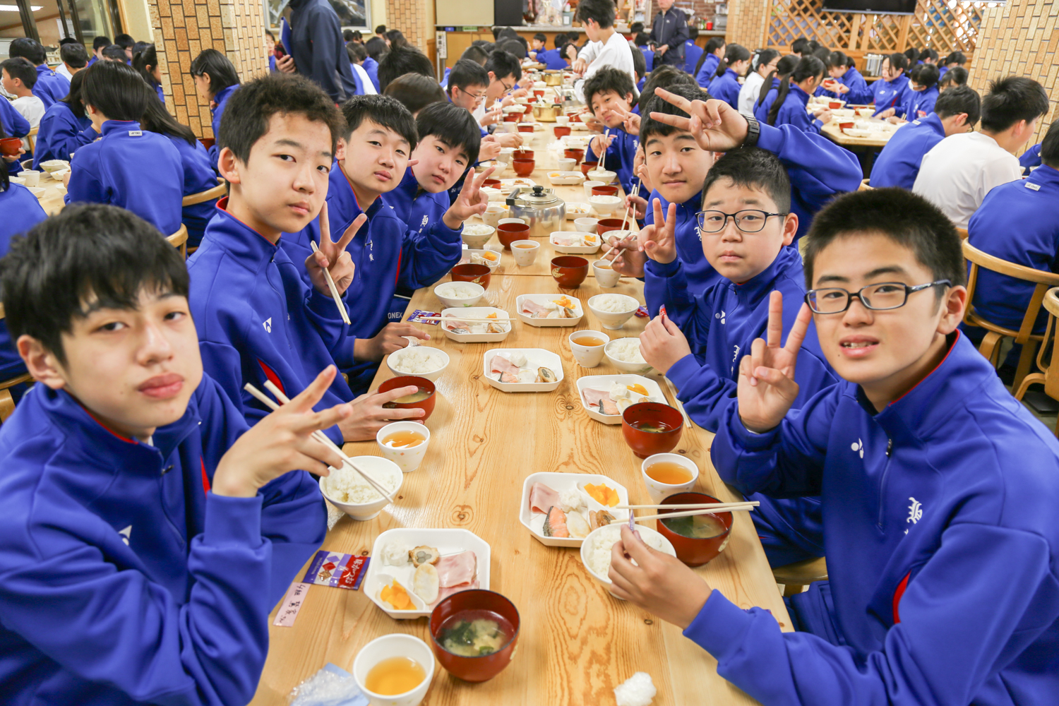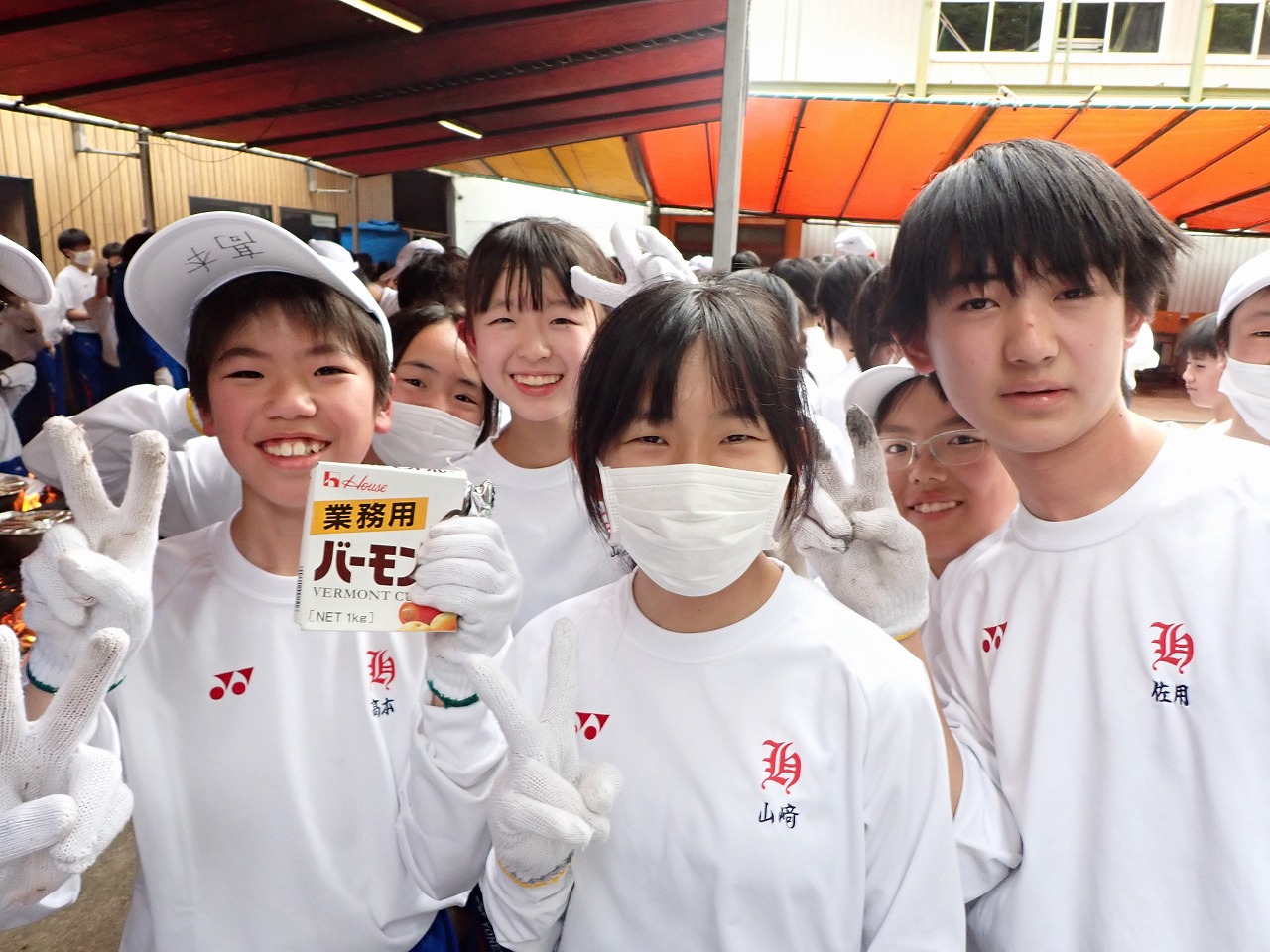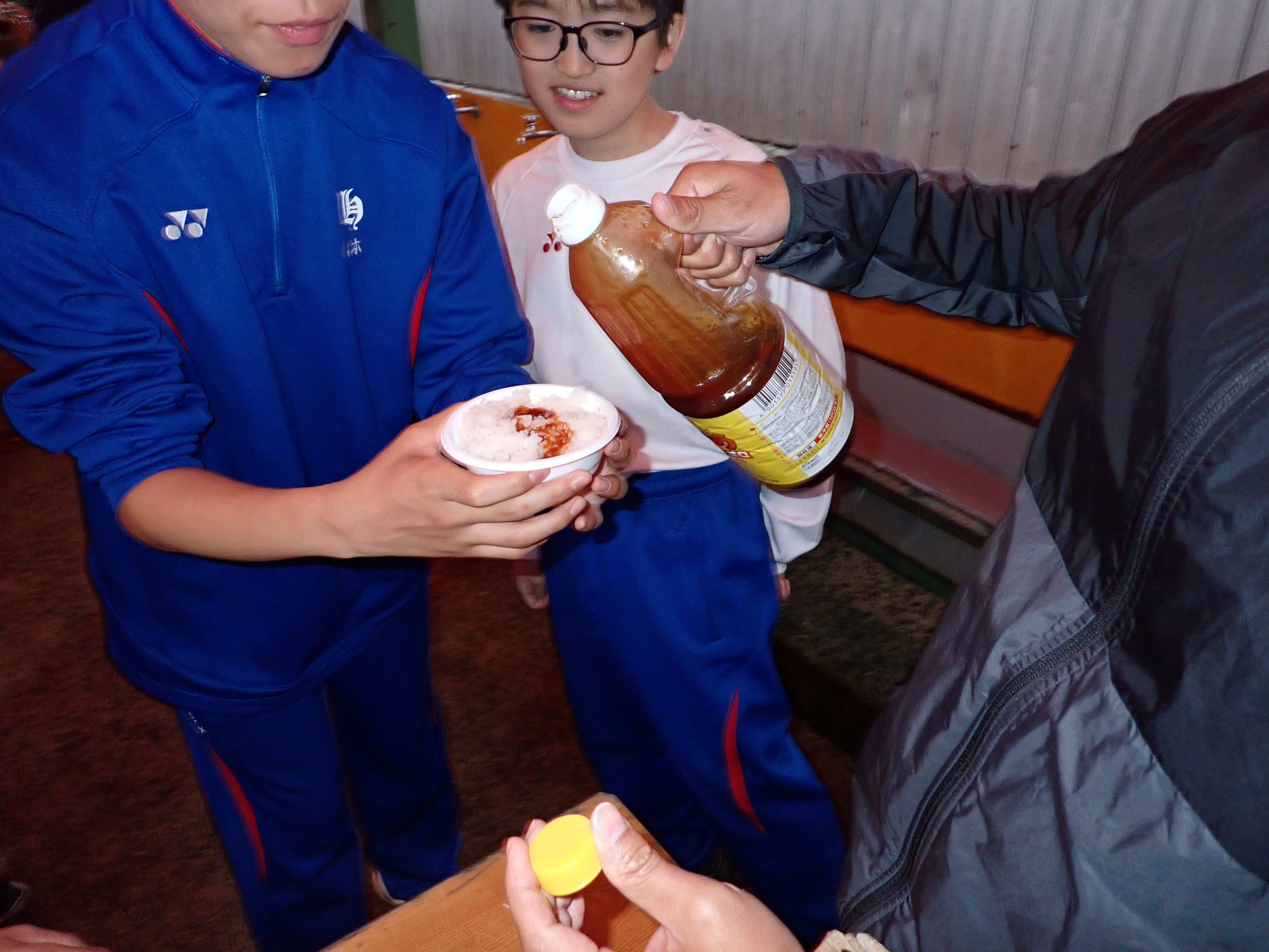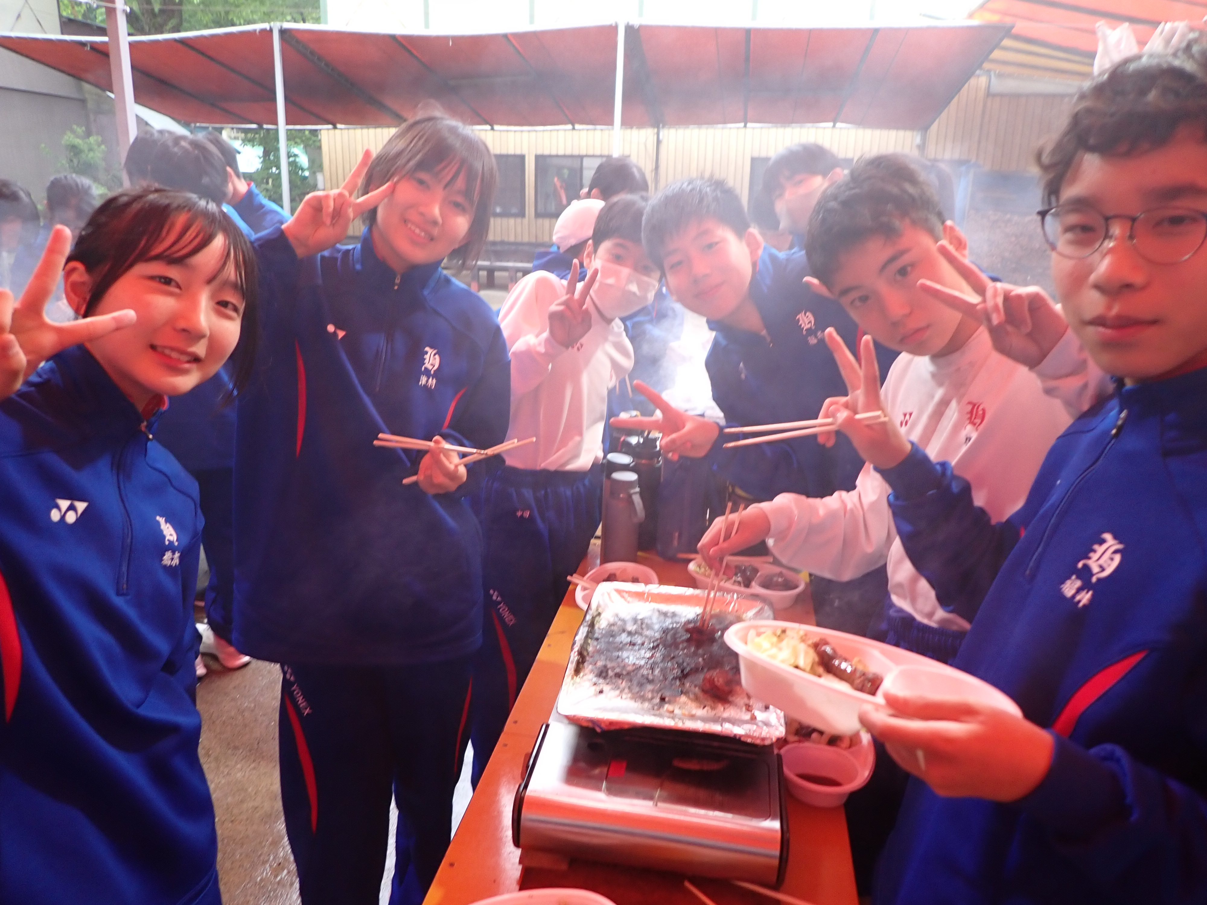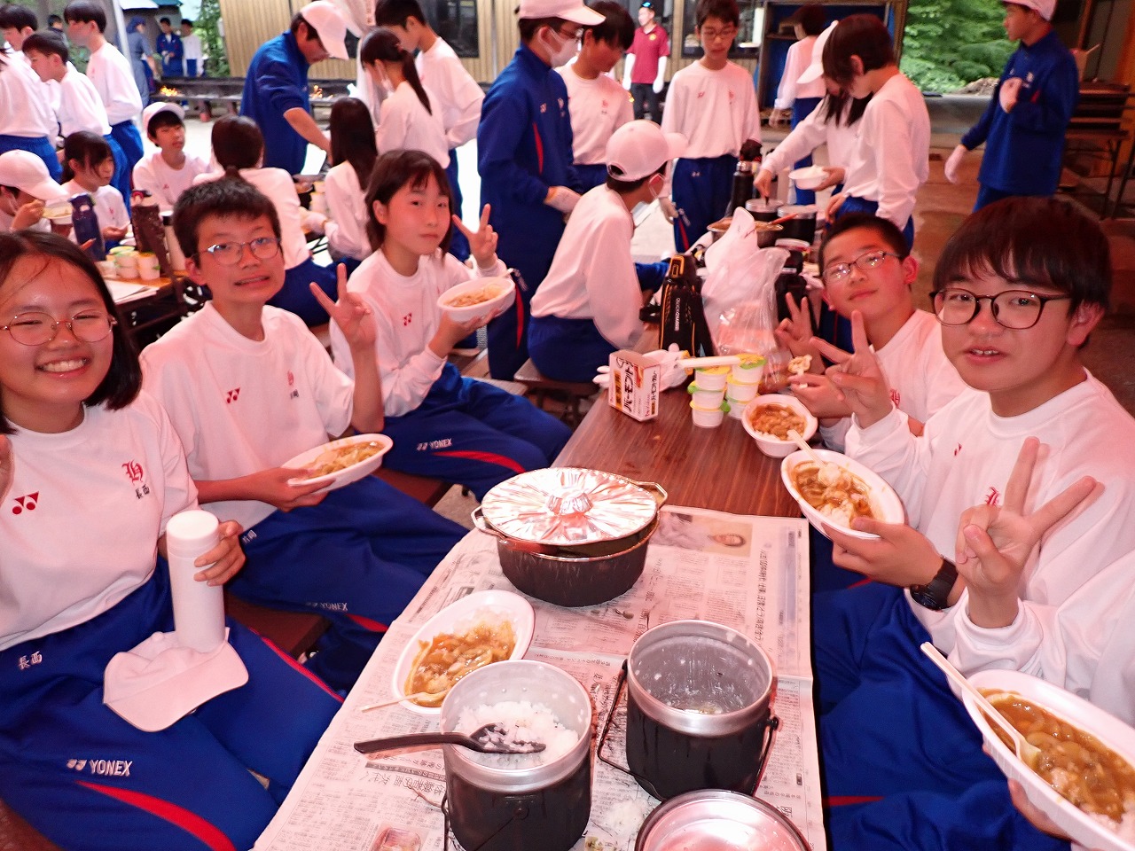 BBQです。アクティブな活動で体力を使ったのか、ご飯のおかわりに行列ができて、準備されていたご飯をすべて平らげてしまいました。中には5杯食べた生徒も…。最後にはご飯にタレをかけて食べていました。