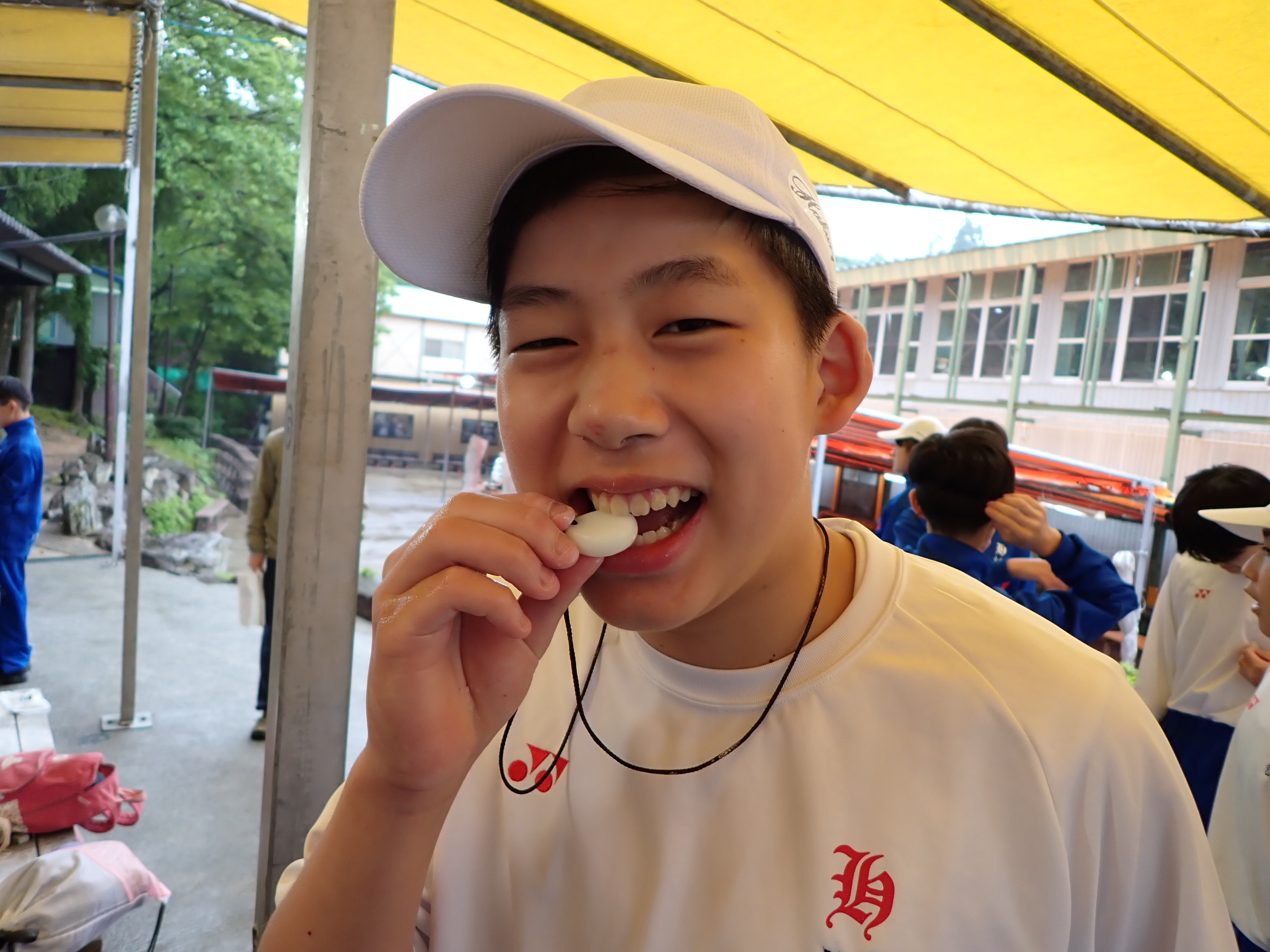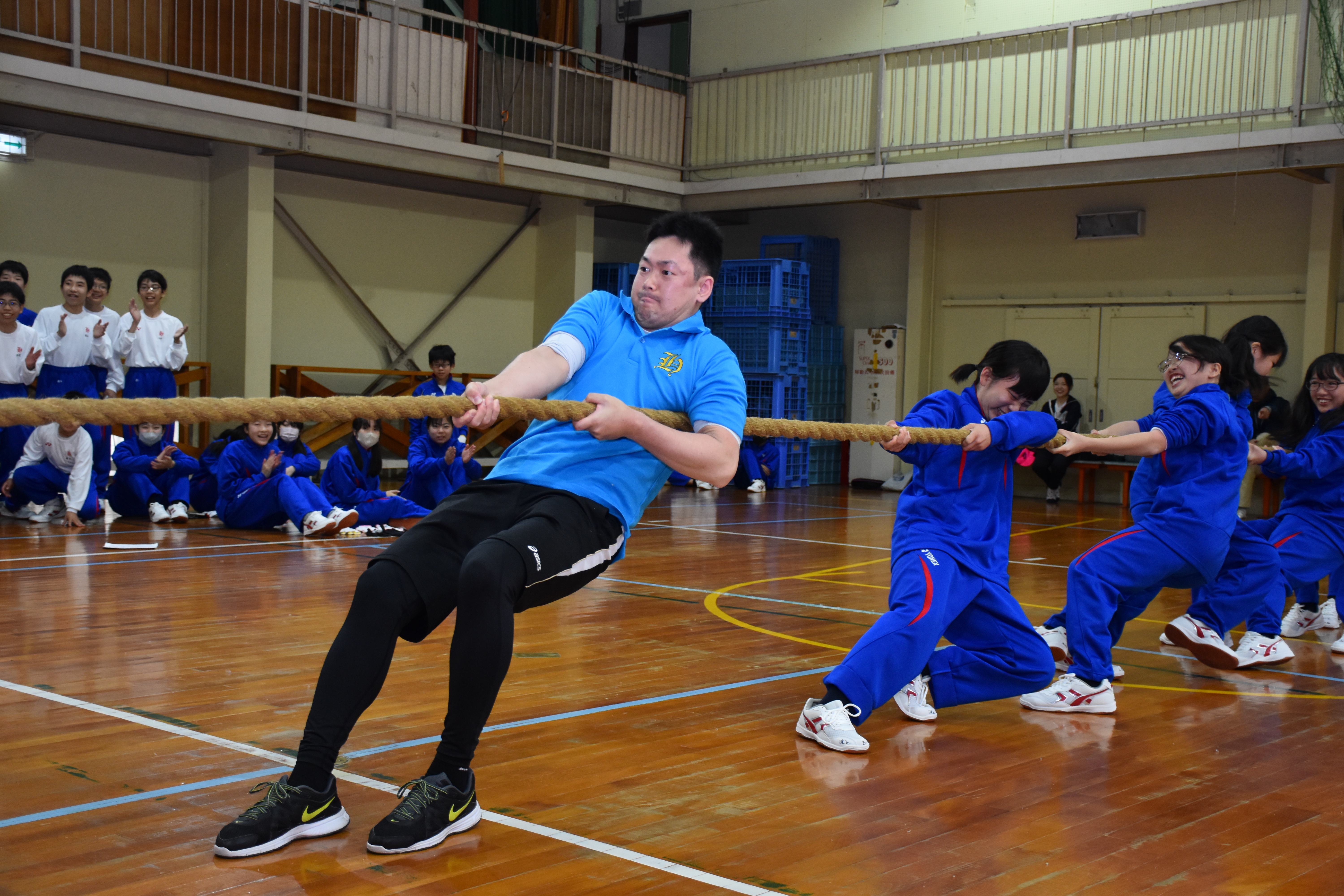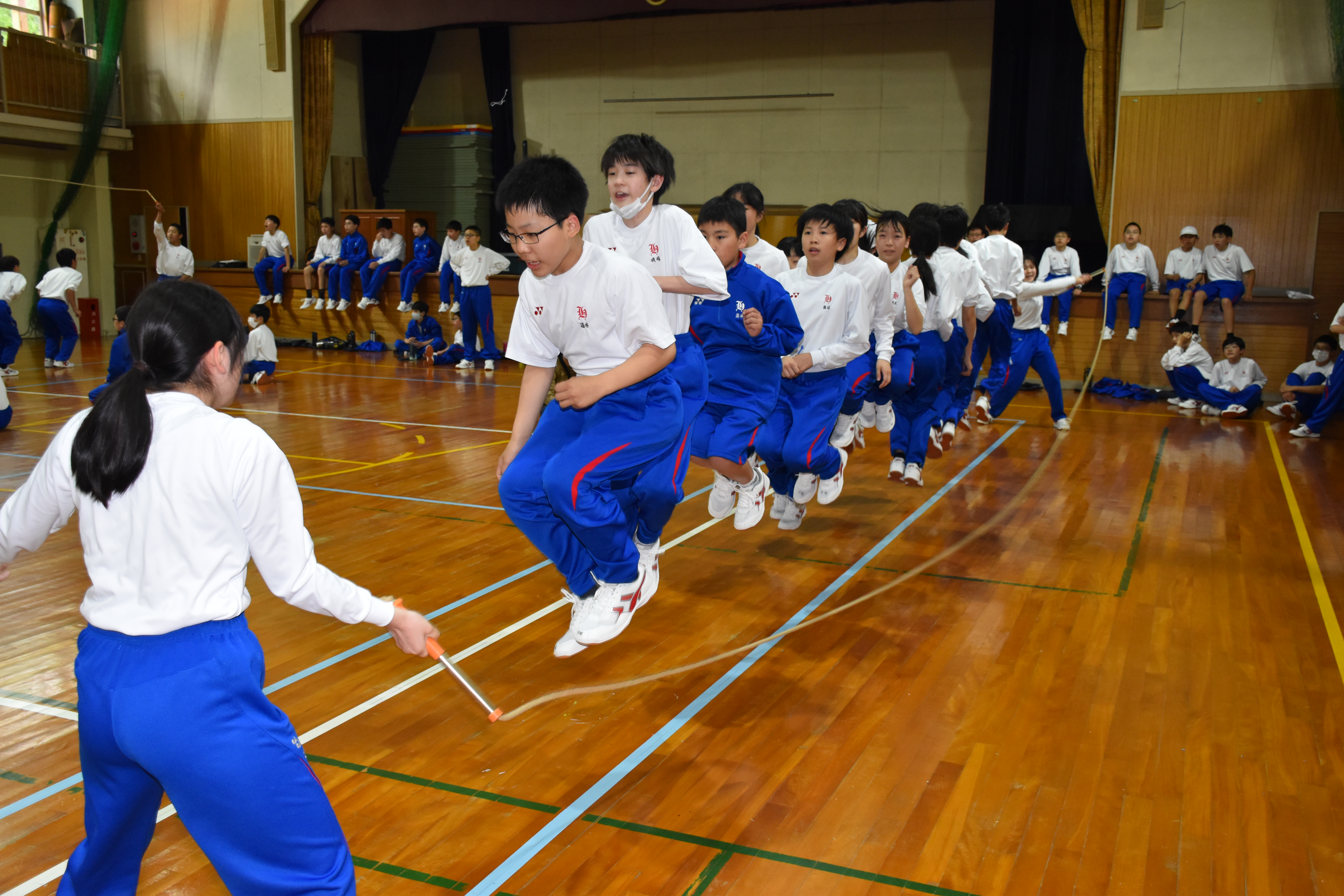 悪天候のため、登山から雨プログラムに変更になりました。大綱引きではクラスが団結しました。 大縄跳びでは1回も飛べない状態から20回飛べるようになった班もありました。 大綱引き男子の部の優勝は3組、女子の部の優勝は4組、男女混合の部の優勝は4組、大綱引きの優勝は1組でした。