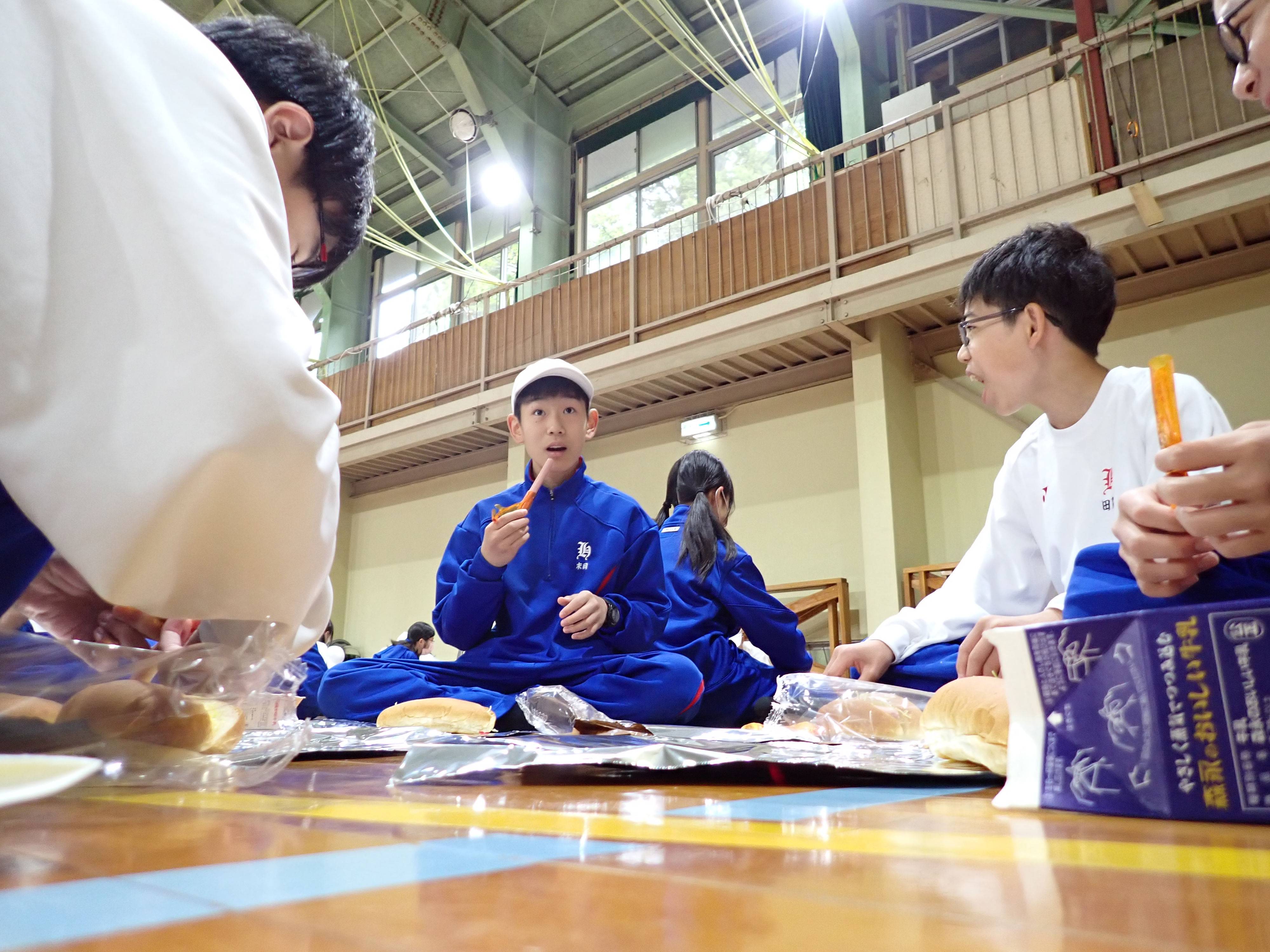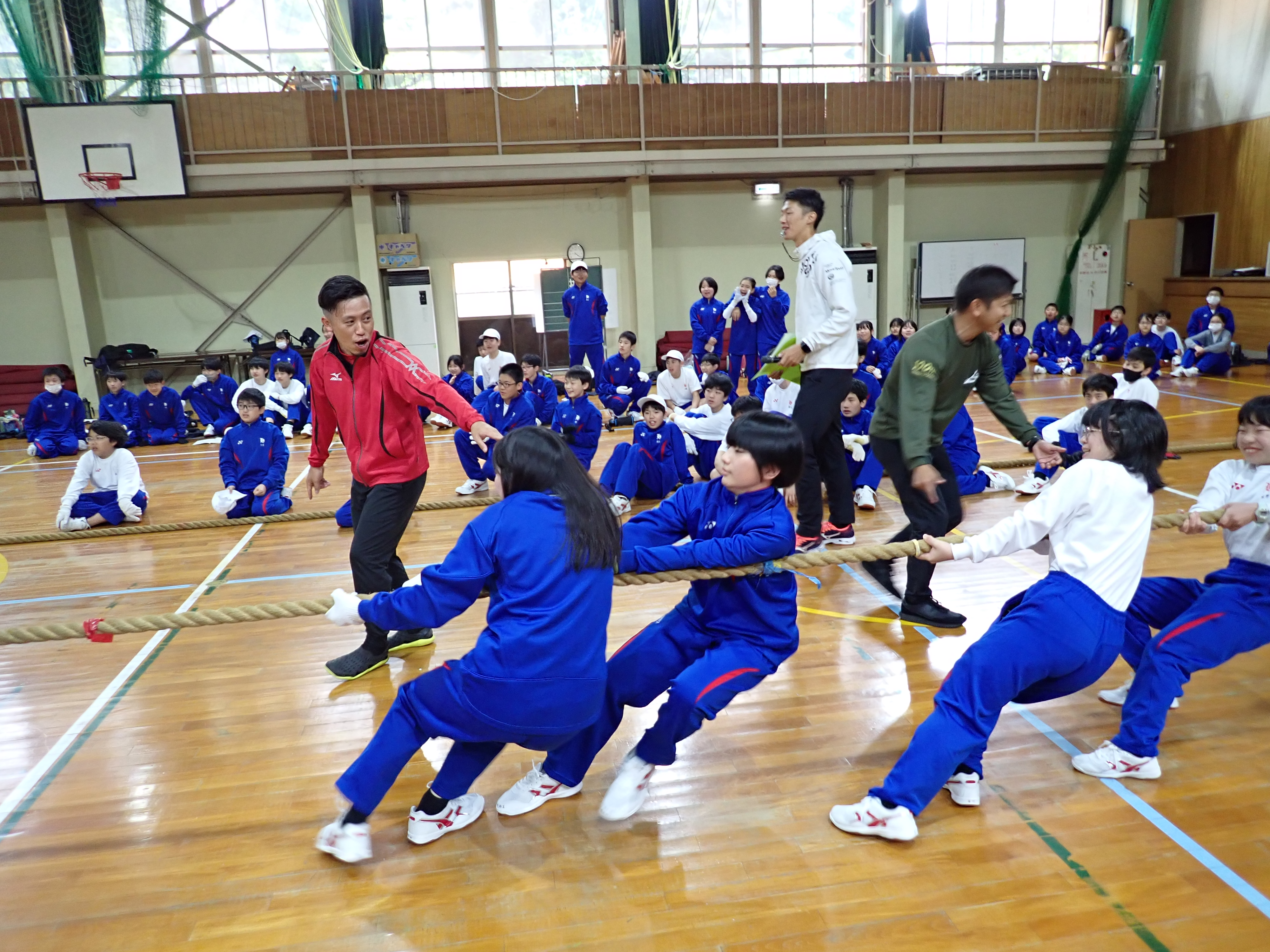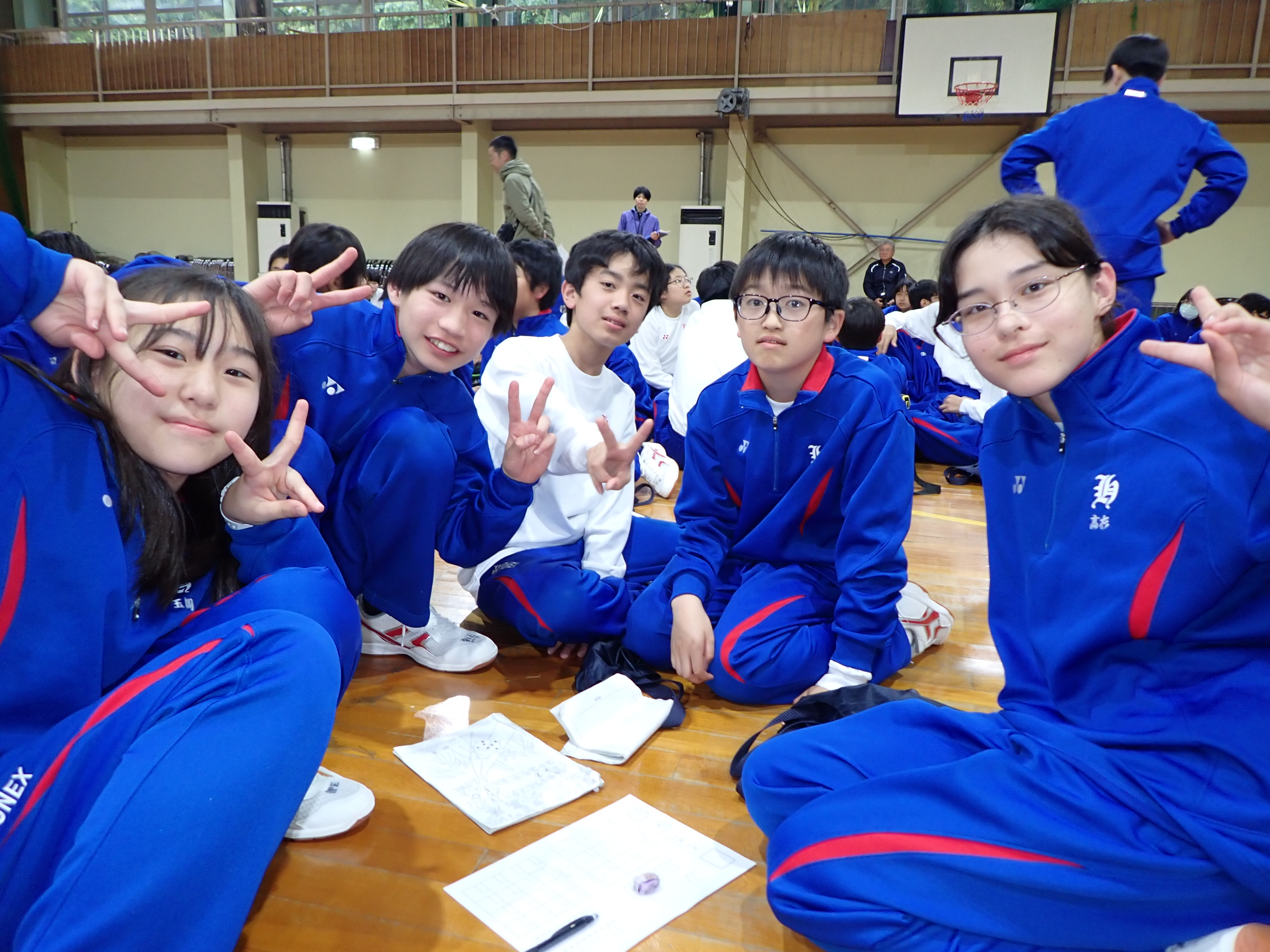 悪天候のため、登山から雨プログラムに変更になりました。大綱引きではクラスが団結しました。 大縄跳びでは1回も飛べない状態から20回飛べるようになった班もありました。 大綱引き男子の部の優勝は3組、女子の部の優勝は4組、男女混合の部の優勝は4組、大綱引きの優勝は1組でした。