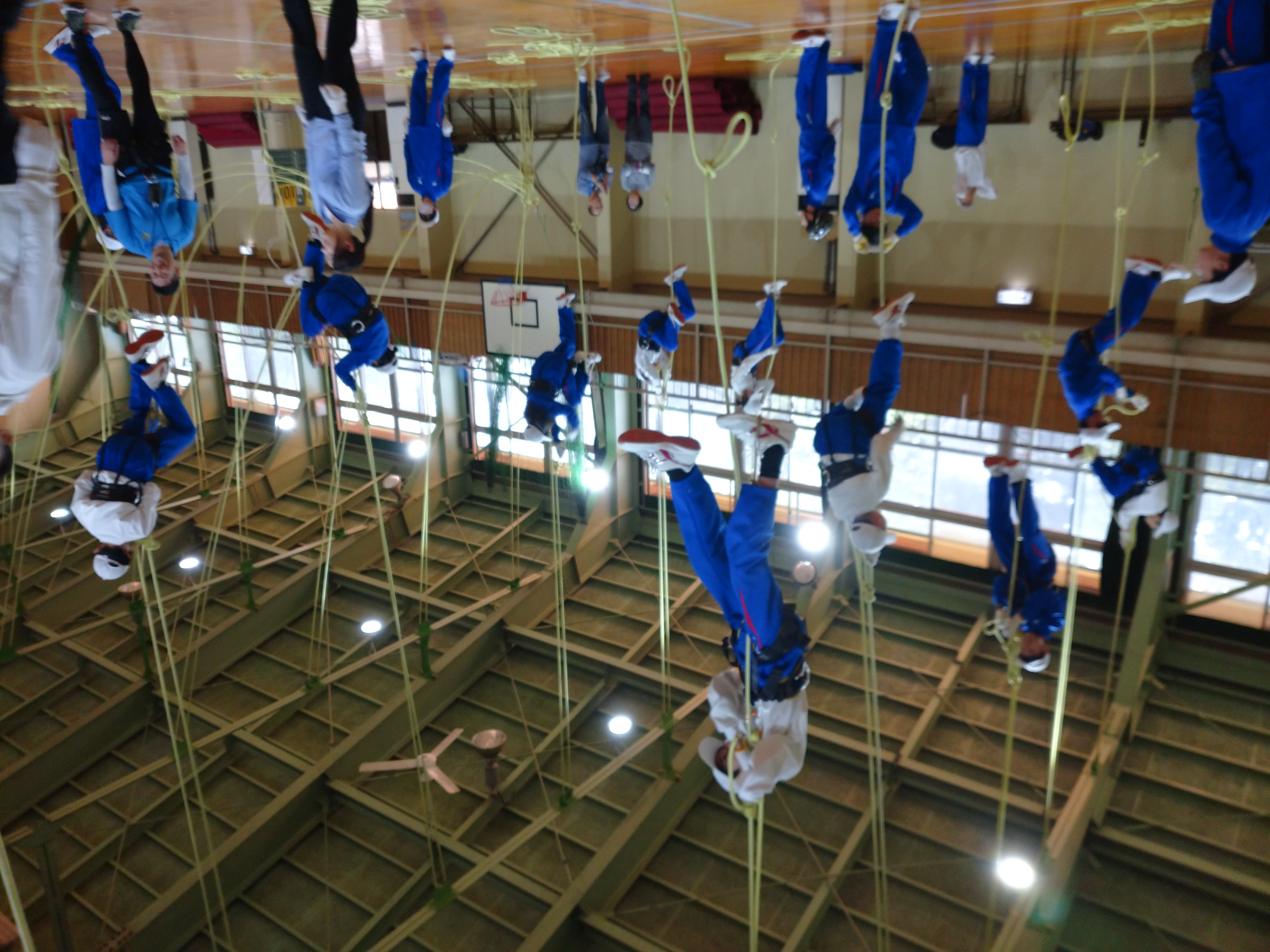 31日に予定されていたロープクライミングなどを前倒しで行いました。同時に3つのグループに分かれて、1時間ずつ3つのメニューを楽しんでいます。