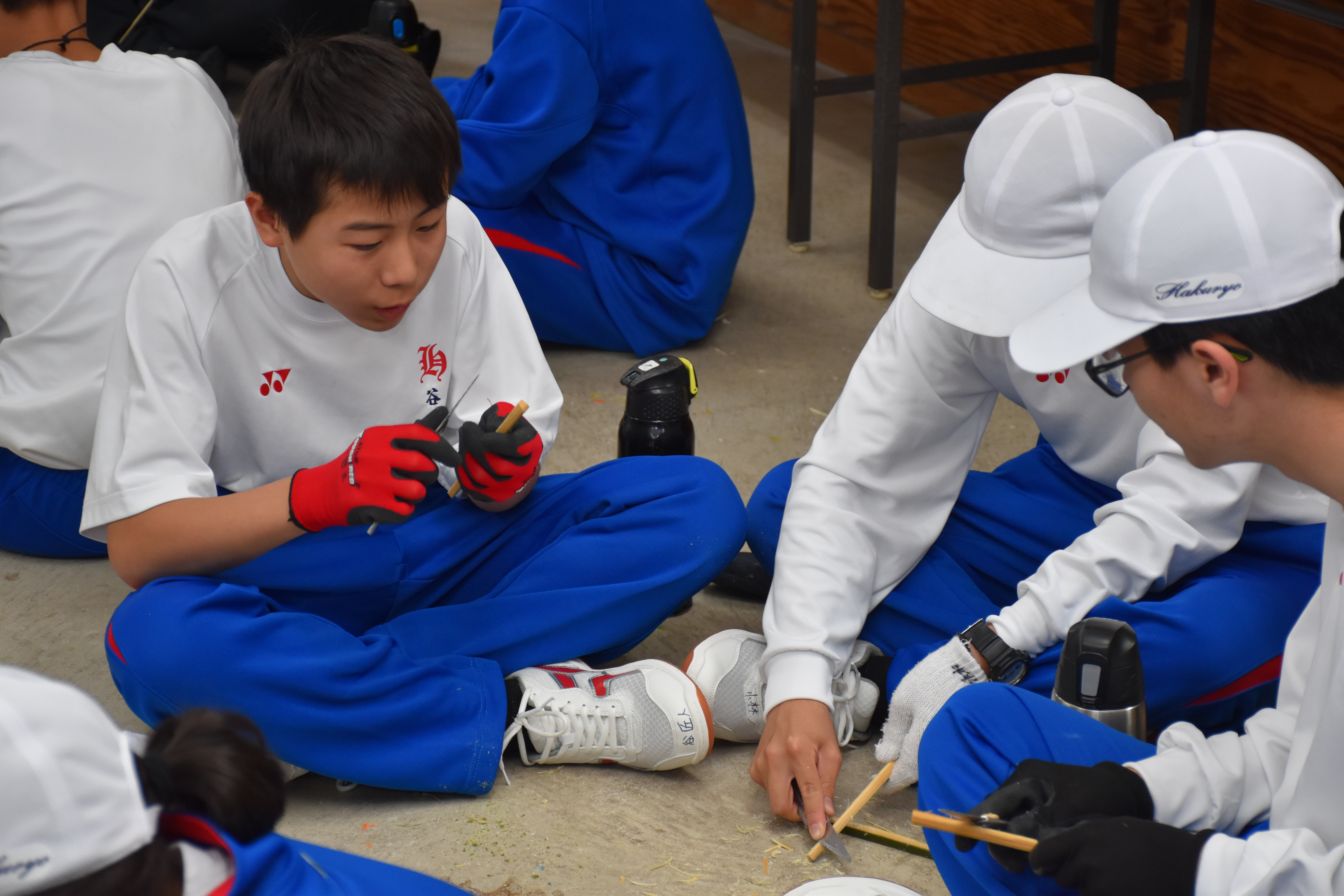 30日の登山の後に予定されていた箸づくりも急遽ローテーションに組み込みました。急な変更にもしっかり対応しています。
