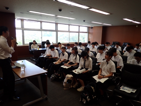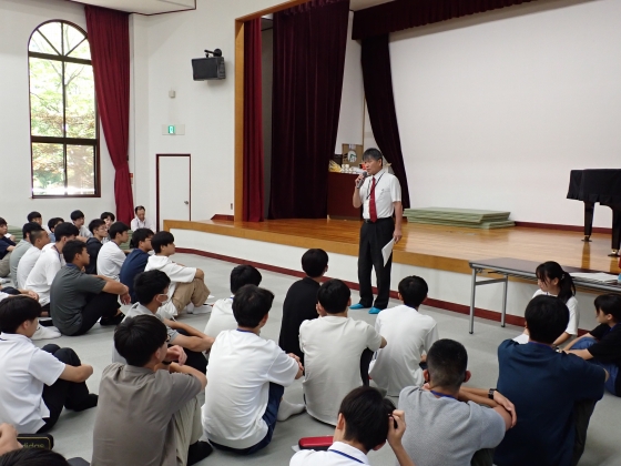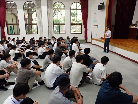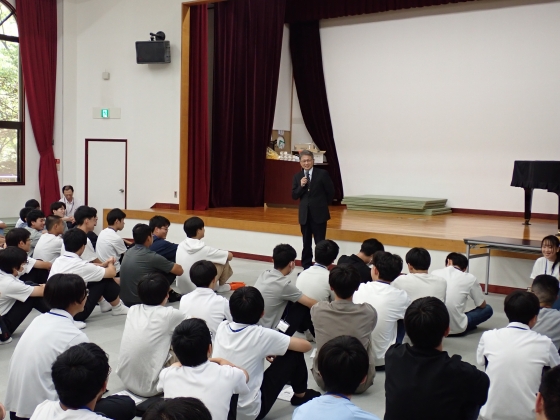 白陵会館で学年集会を行いました。学校長、高校部長、学年主任から話がありました。