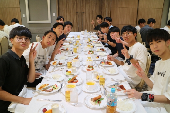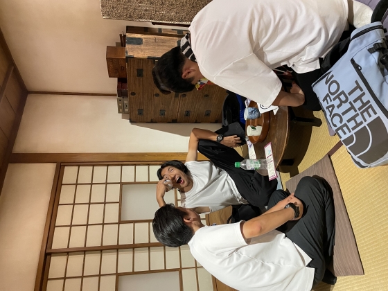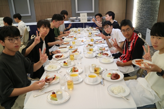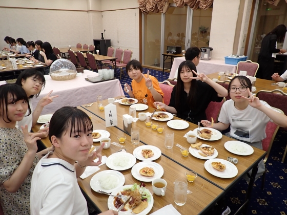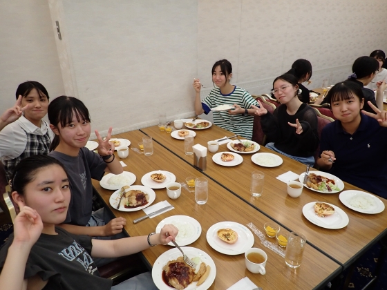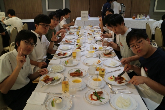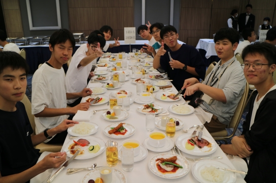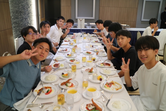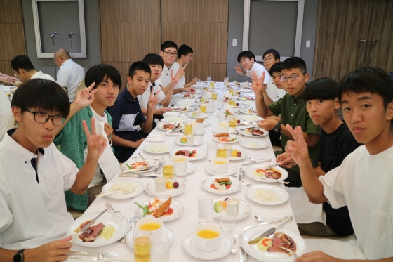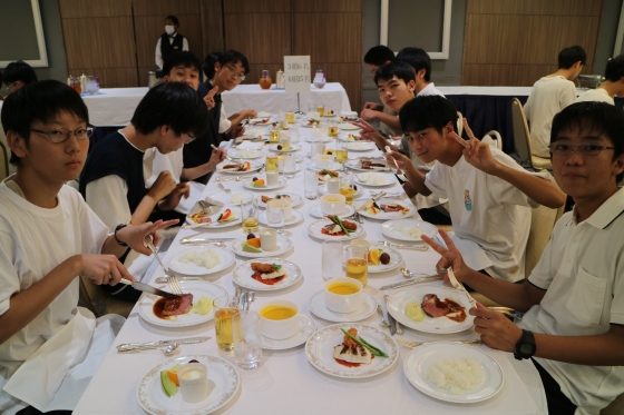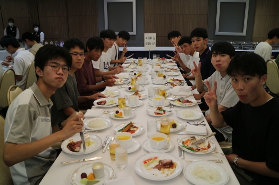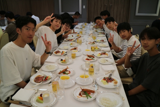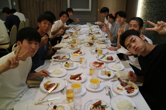 各ホテルに無事全員到着し、夕食の時間です。まずは男子。