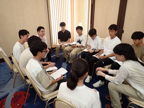 2日間の振り返り学習をしています。印象に残ったことを2分間ずつスピーチで発表しています。教員の想定以上に真剣にスピーチをしてくれて、みんな貴重な追体験が出来たかと思います(63期すごいぞ!)