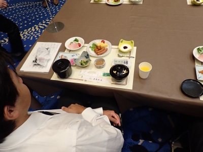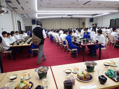 夕食会場の様子。十和田バラ焼きを再び、おいしくいただきました。