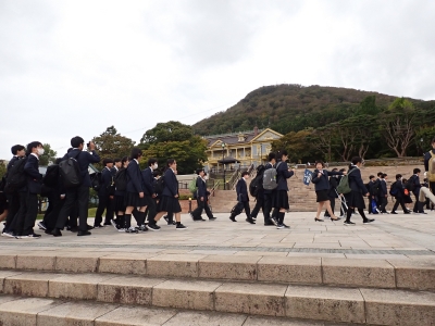 新函館北斗駅からバスで旧函館公会堂前まで移動しました。集合写真を撮って、班別研修に入りました。