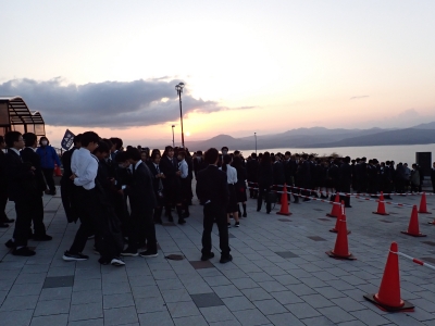 函館山に到着して日没を迎えました。綺麗な夜景が見られました。