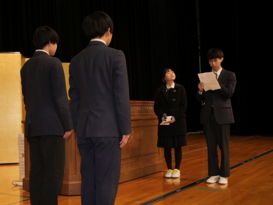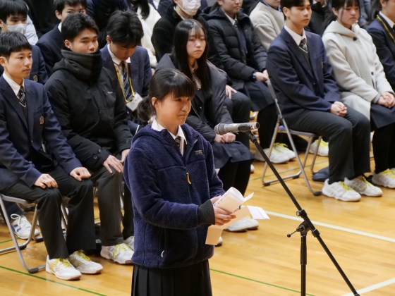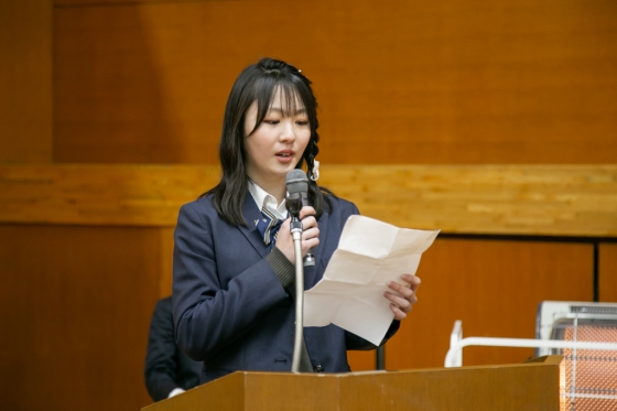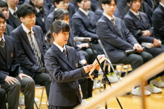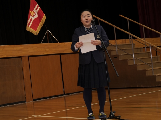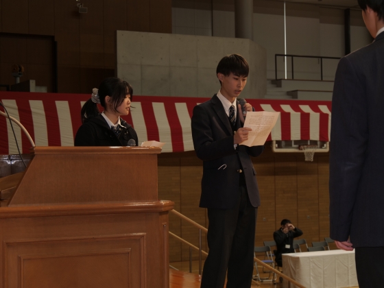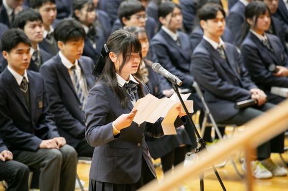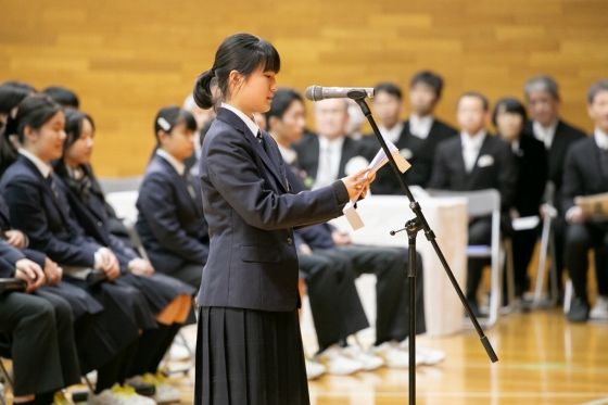 白鷺同行志常新 はくろどうこうこころざしつねにあらたなり厳しい冬の寒さはまだ続きますが、少しずつ春の訪れを感じられるようになった今日、私たちはこの学び舎から旅立ちます。 本日は、私たち61期生のためにこのような素晴らしい卒業式を挙行してくださったことを、卒業生を代表して心より御礼申し上げます。