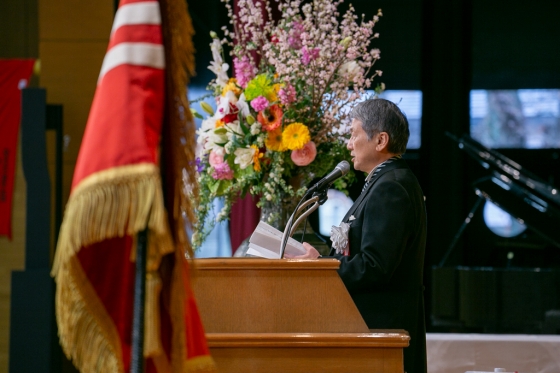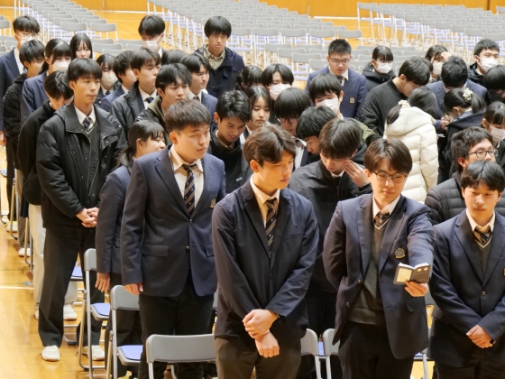 立春を過ぎてからも寒い日が続きました。それでも太陽からの恵みは日に日に増しています。 この佳き日に、卒業を迎えられた190名の皆さん、誠におめでとうございます。 ご来賓の皆様、ご列席の皆様、そして在校生とともに、ご卒業をお祝い申し上げます。 あわせて、これまで関係者の皆様より賜りました多大なるご支援に、感謝申し上げます。