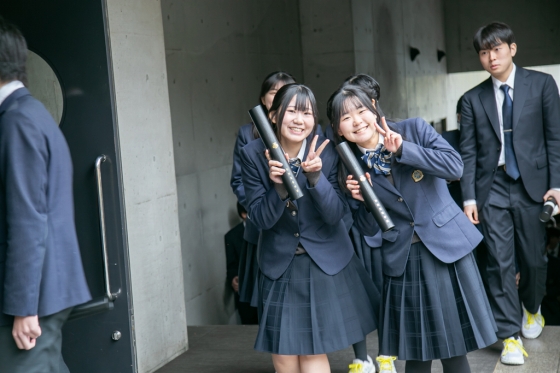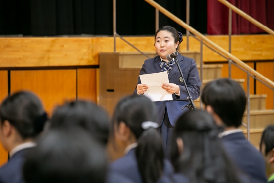 皆様は、本校での六年間を通し、学業面は勿論、学校行事や部活動等において私達後輩を導いてくれました。 改めて今までの学校生活を振り返ると、事あるごとに先輩方の持つ圧倒的な力に元気を頂いたことに気づきます。