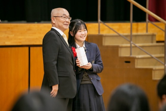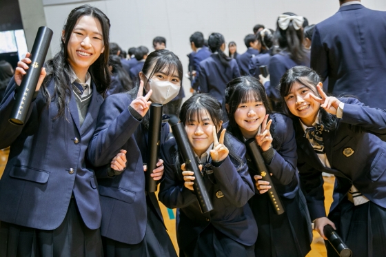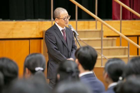 最近、「AIの発達で無くなる職業は何か」といった話題を耳にすることがあります。将来に不安を感じることがあるかもしれません。 しかし、社会は常に変化しますし、まずは今自分ができることに取り組めば、自分自身も変化します。 つまり壁の意味そのものが変わるのです。「AIに任せる部分は任せる。しかしその前に、人間ができることは人間がする」という姿勢が大切です。 そうでなければ、人は考える力を失い、AIの奴隷になってしまうからです。AIや他人に未来を尋ねるのではなく、 仲間とどのような未来を創りたいのかを考え、自ら未来を創り出してください。それこそが「新生」から「つなぐ」、 そして「HERO」へと続く皆さんの歩みでもあったのではないでしょうか。