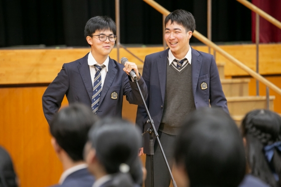 皆様が白陵で過ごした六年間はこれからの人生において、心のなかでふと立ち帰る時間になるでしょう。 これから先、それぞれの信じた道を突き進んでいく中で先輩方の培った学びや絆、そして忍耐が困難の中発揮されていくことと信じています。