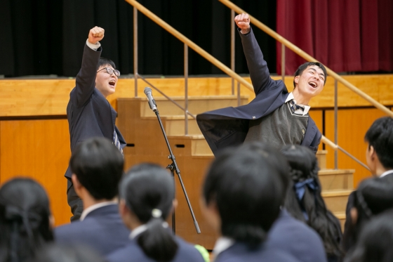 こうした経験を積み重ねる中で、皆さんはもちろん、学年主任も含め、ウイルスに負けない強さを身につけていったのではないでしょうか。 高校3年生になると、皆さんはますます元気で、後輩たちが掲げた白陵祭のテーマ「HERO」がまるで自分たちを表す言葉のように感じた人もいるでしょう。 特に運動会での力強い姿には、大きな成長を感じました。そういった積み重ねにより、コロナ禍のあいだ中止が続いていた運動会は、 この3年間で一つの完成形へと近づきました。新年度からは5月開催の体育祭へと、さらに進化していくことでしょう。
