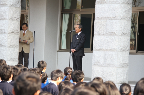 本日は、そんなに寒くなく、前庭での始業式となりました。