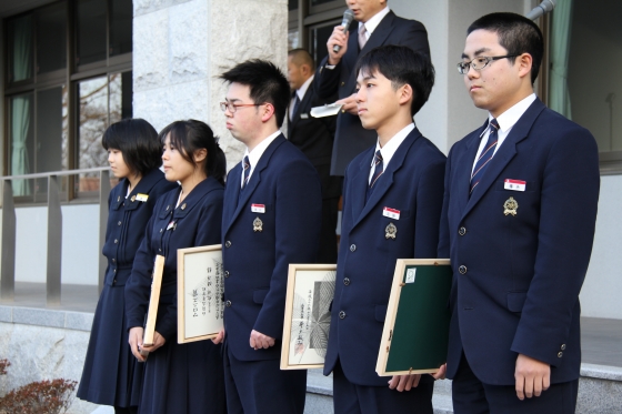 始業式に先立って、マロニエ賞などの表彰が紹介されました。