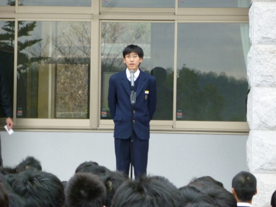 学年末試験の答案返却の日の朝、次期生徒会長の選挙に向けて立会演説会が行われました。