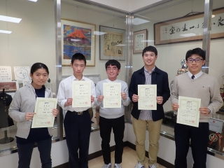 2020年10月8日、物理オリンピック日本委員会主催の物理チャレンジ2020の第2チャレンジにおいて, 高校3年 鎌谷一生 森芳健司君,高校2年 伊藤陽莉さんが優良賞、 高校3年 川北魁人 妻鹿涼将君が奨励賞を受賞しました。 伊藤陽莉さんは国際物理オリンピックIPhO2021の日本代表候補者に選ばれました。